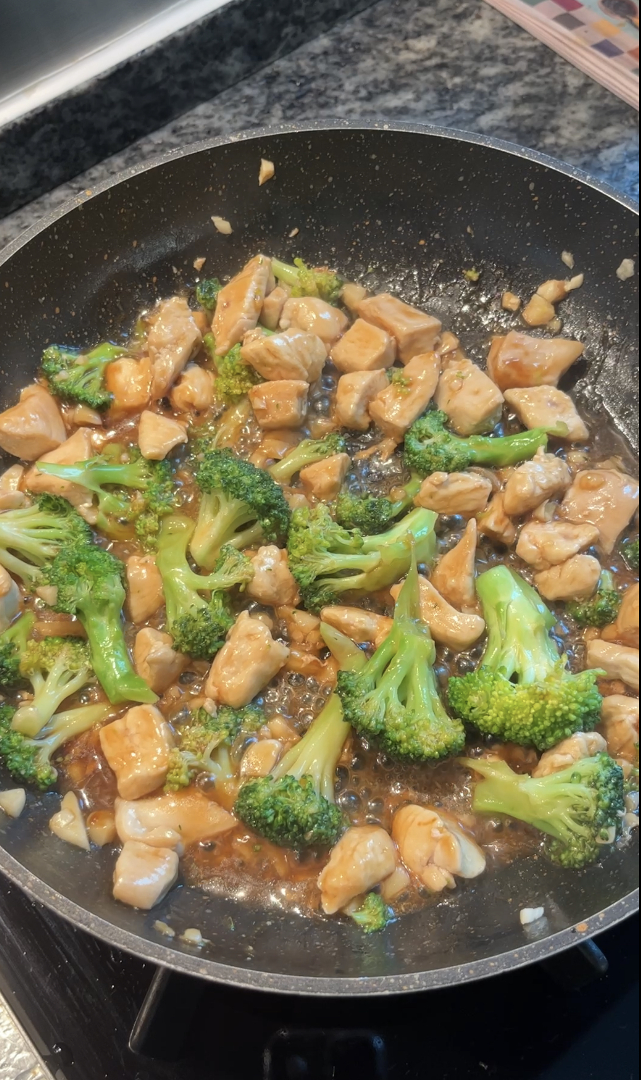 - Begin by slicing the chicken breast thinly and chopping the broccoli into bite-sized florets. Mince the garlic and grate the ginger if using.