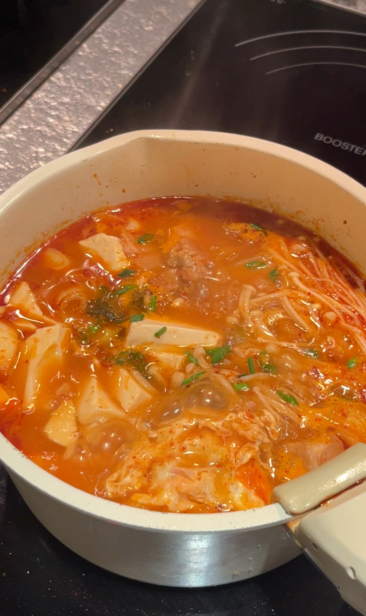 This is the ultimate fiery, nourishing, and deeply flavorful Korean comfort stew. It starts with a base of tangy, fermented kimchi and savory pork belly, fried until caramelised to create a powerful, umami-rich foundation. Soft, silken tofu is then gently broken into the bubbling, scarlet-hued broth, creating delicate clouds that melt in your mouth. It’s a complex, satisfying, and deeply restorative one-pot meal that balances spice, sourness, richness, and soft texture in every spoonful.