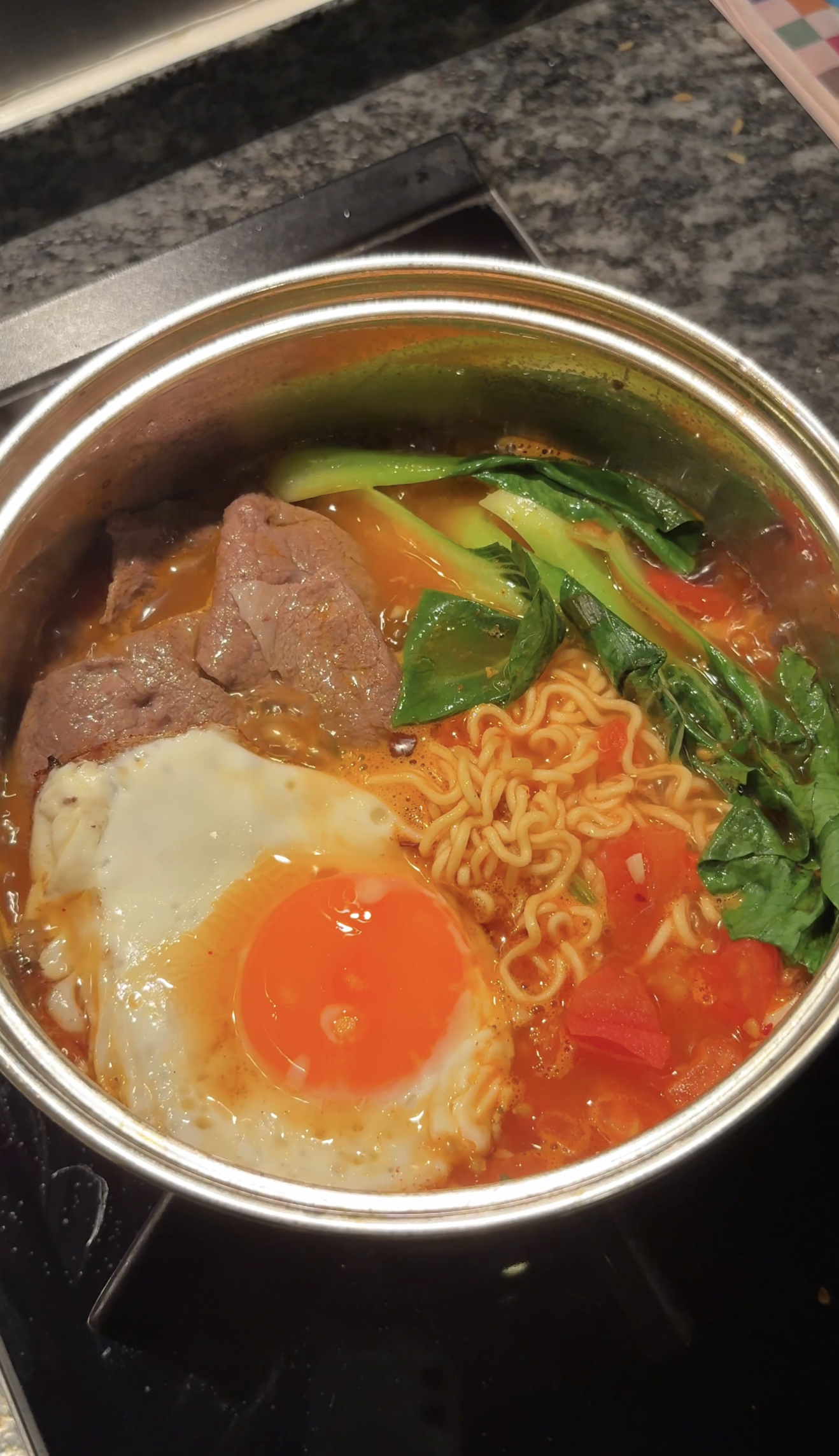 Tomato Beef Shin Ramen transforms a quick, convenient meal into a comforting culinary experience. The combination of seared beef and fresh tomatoes creates a rich and savory broth that complements the noodles perfectly, while the fried egg adds a delightful creaminess. This dish is not only simple to prepare but also customisable, making it a satisfying option for a busy day, a cozy evening in or your 12am cravings.